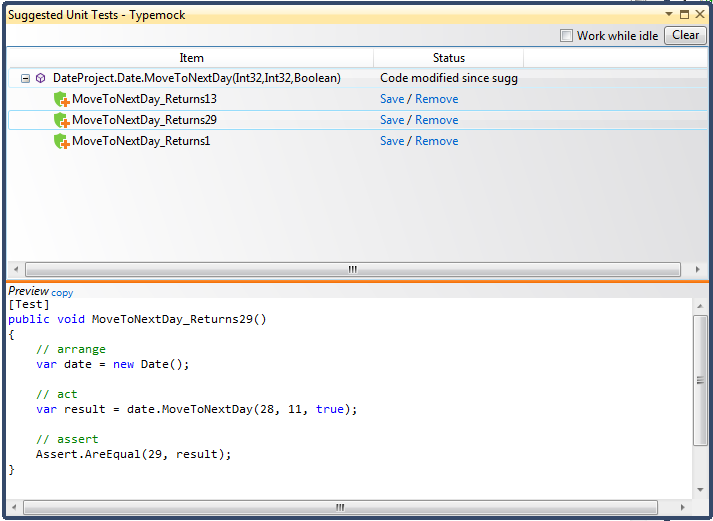 1. Open the class or method for which you want Typemock Isolator to suggest a test.