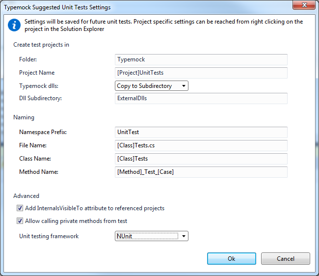 In the Dll Subdirectory field, specify the name for the Typemock referenced assemblies, if you choose to copy them to the subdirectory prevoiusly.