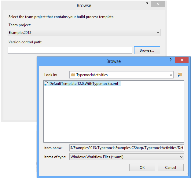 If you use a previous version of Team Foundation Server: DefaultTemplate.12.0.WithTypemock.xaml