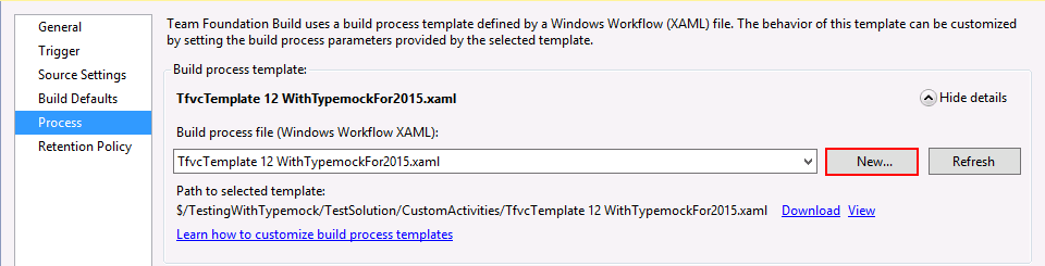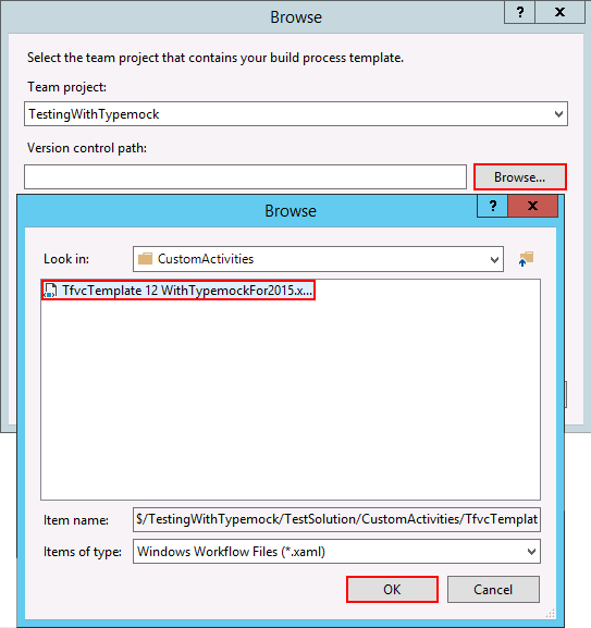 9. Select TfvcTemplate 12 WithTypemockFor2015.xaml