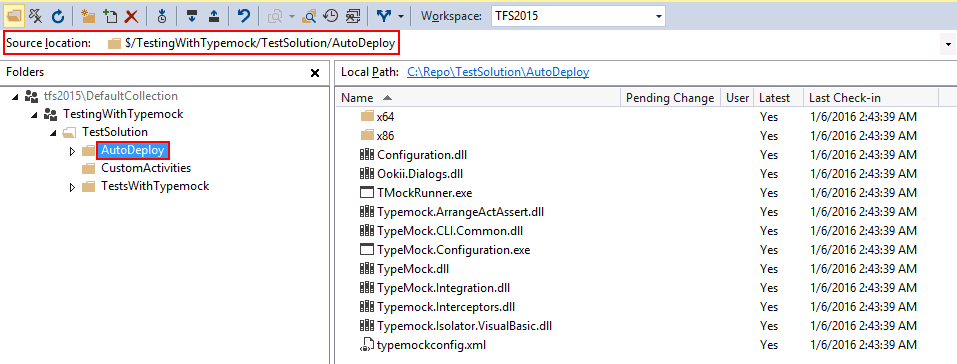 1. Find the AutoDeploy folder's Source Location in Source Control Explorer.