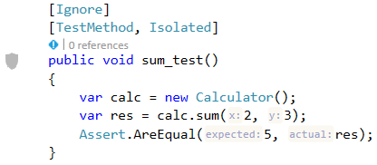 Test project coverage– shows the percentage of unit tests in your test project (named TestProject in the above example) that were passed and not ignored (tests that are ignored are marked with the [Ignore] attribute).