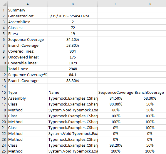 Csv format – allows you to visualize your Coverage report:
